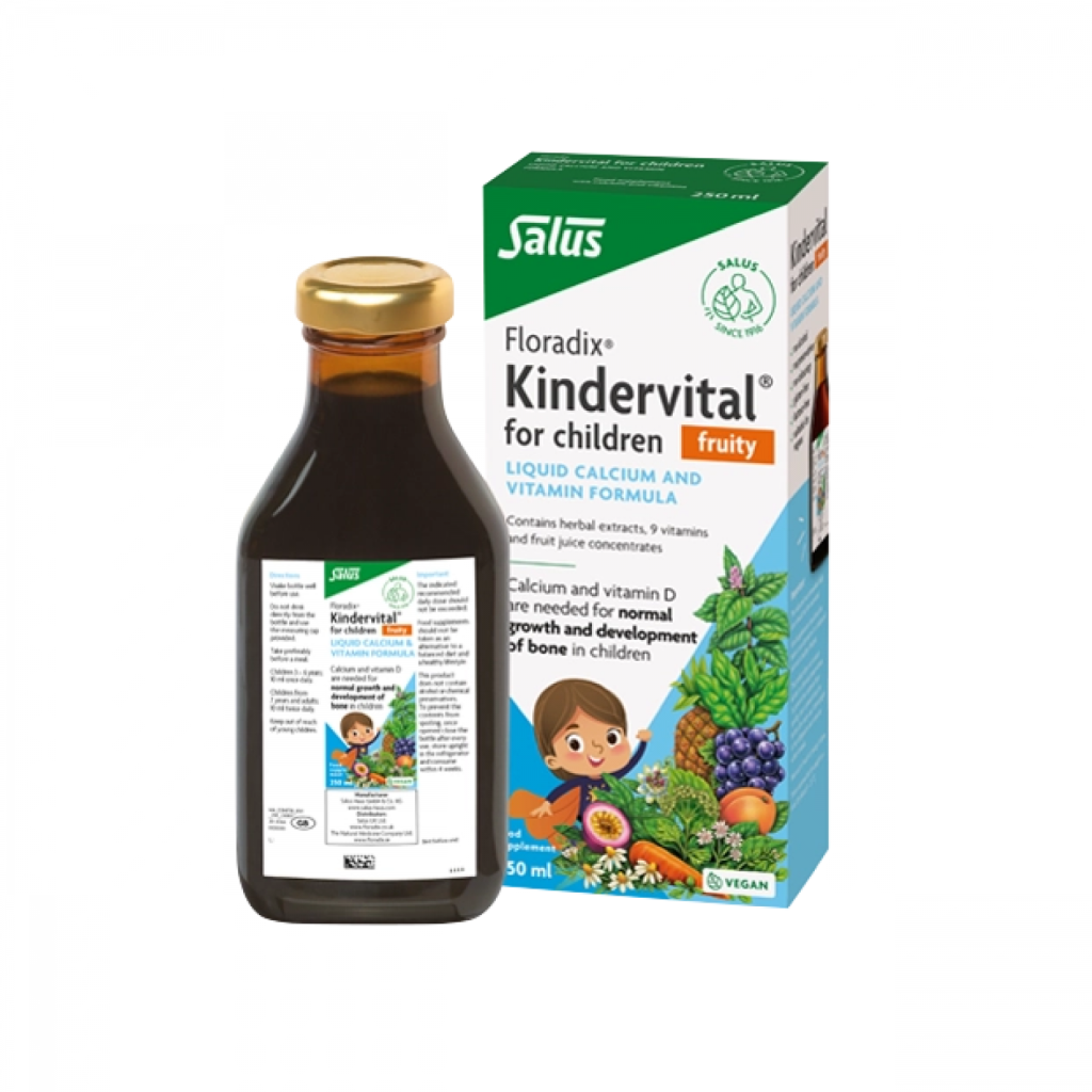 Floradix Kindervital 是一款美味的兒童食品補充劑,可提供骨骼正常生長發育所需的必需鈣和維生素 D。