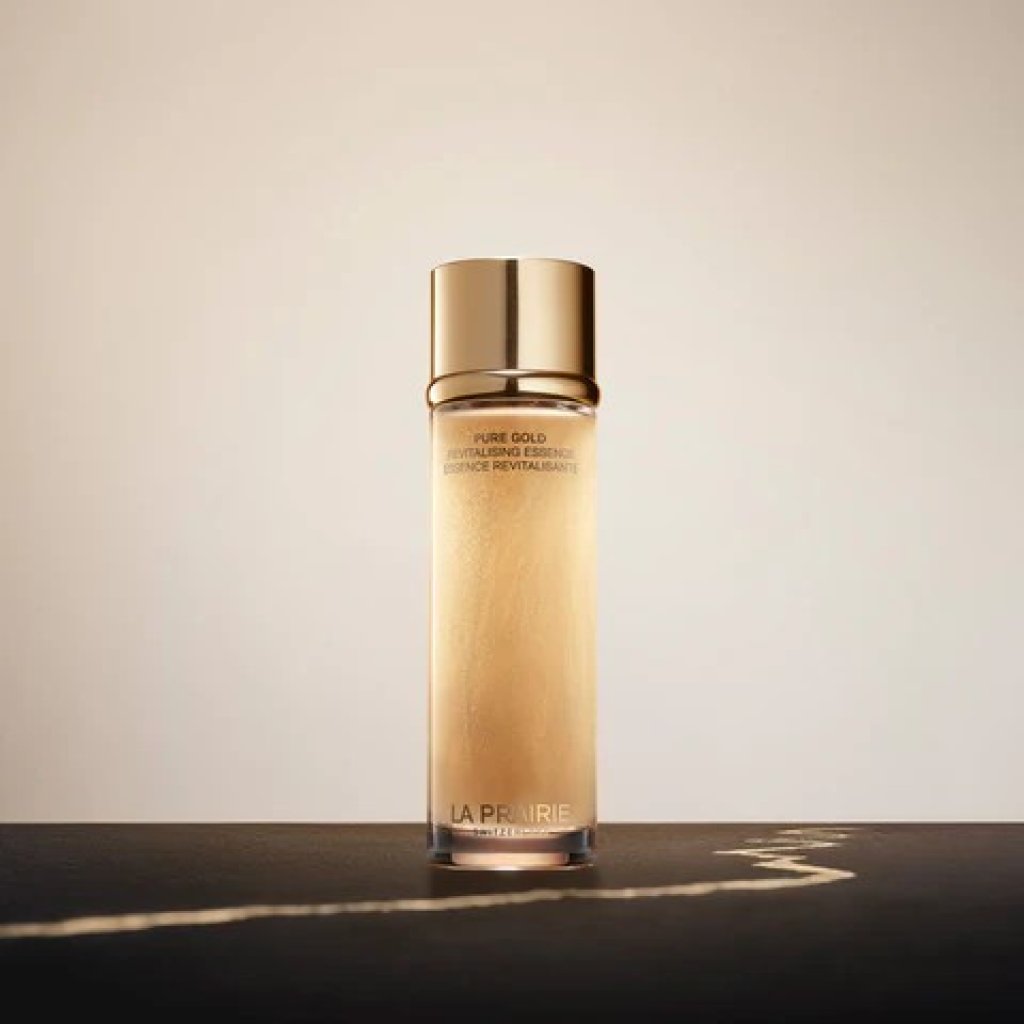La Prairie 純金亮膚精粹露(Pure Gold Radiance Revitalizing Essence)是一款頂級奢華的精華水/精華液,結合「純金傳導系統」與「獨家專利活細胞複合物」,專為對抗荷爾蒙變化引起的暗沉、流失與老化設計。它能深入肌底填補結構、提升密度,4週內使肌膚顯著緊緻、滋潤並重現亮采。